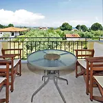 La Studios Stella Vourvourou ofrece vistas a las montañas y se encuentra a unos 600 metros de la Sea Kayak Halkidiki. Esta casa rural espera a los huéspedes en una terraza con una mesa de comedor.